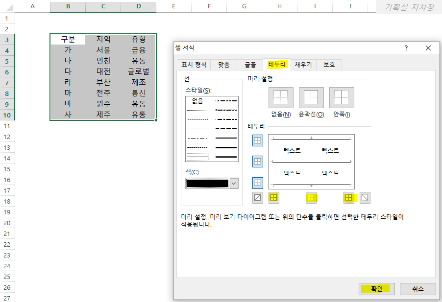이상 선을 그려 표 만드는 법에 대해서 알아봤습니다.