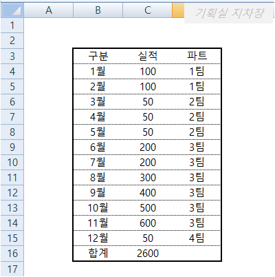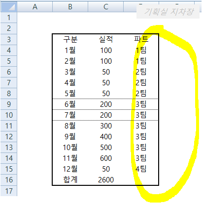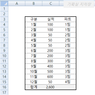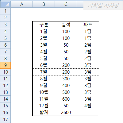 테두리는 굵은선, 가로줄은 점선으로 보완하여 그리고, 합계는 회색으로 칠하고, 실적은 천단위 표시해볼께요.